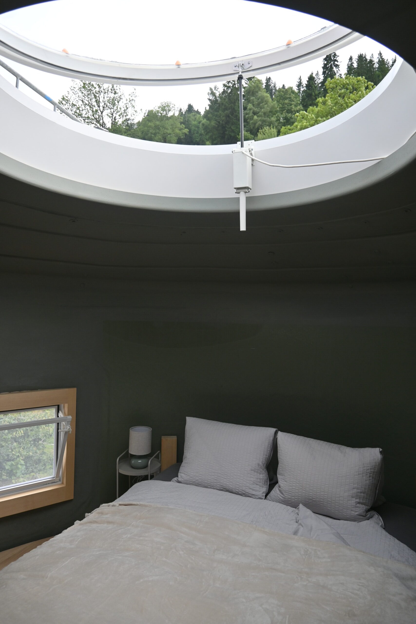 Die einzigartige Unterkunft für bis zu vier Personen auf dem Bio-Landwirtschaftsbetrieb Tannenhof ist auf vier Stockwerken gebaut: Im Eingangsbereich ganz unten befindet sich das Bad mit WC und Dusche. Auf dem ersten Stock ist der Essbereich mit Zugang zu einem ruhig gelegenen Aussensitzplatz. Auf dem zweiten Stock ist ein gemütlicher Lesebereich mit Schlafsofa und im obersten Stock ein Doppelbett direkt unter einer Lichtkuppel. Ganz speziell, die transparente Lichtkuppel öffnet sich automatisch bei schönem, trockenem Wetter und sorgt im Silo für ein angenehmes Raumklima. Das neue Angebot richtet sich besonders an Natur‑, Abenteuer- und Sportliebhaber, liegt direkt am Bike- und Wanderwegnetz und ist nur 700m vom Bahnhof Escholzmatt entfernt. Zum Frühstück mit regionalen Delikatessen dürfen auch Eier direkt aus dem Hühnerstall und frische Milch von den eigenen Kühen bezogen werden. Nachhaltigkeit wird hier gelebt. So ist der Tannenhof auch Teil des Schweizer Nachhaltigkeitsprogramms Swisstainable und auf dem Level I – committed eingestuft. Eine E‑Bike-Ladestation und eine Reparaturwerkstatt stehen selbstverständlich auch zur Verfügung, schliesslich ist die dezentrale Erlebniswelt Escholzmatt-Marbach nebst der Kulinarik vor allem als Bike-Destination weit herum bekannt.